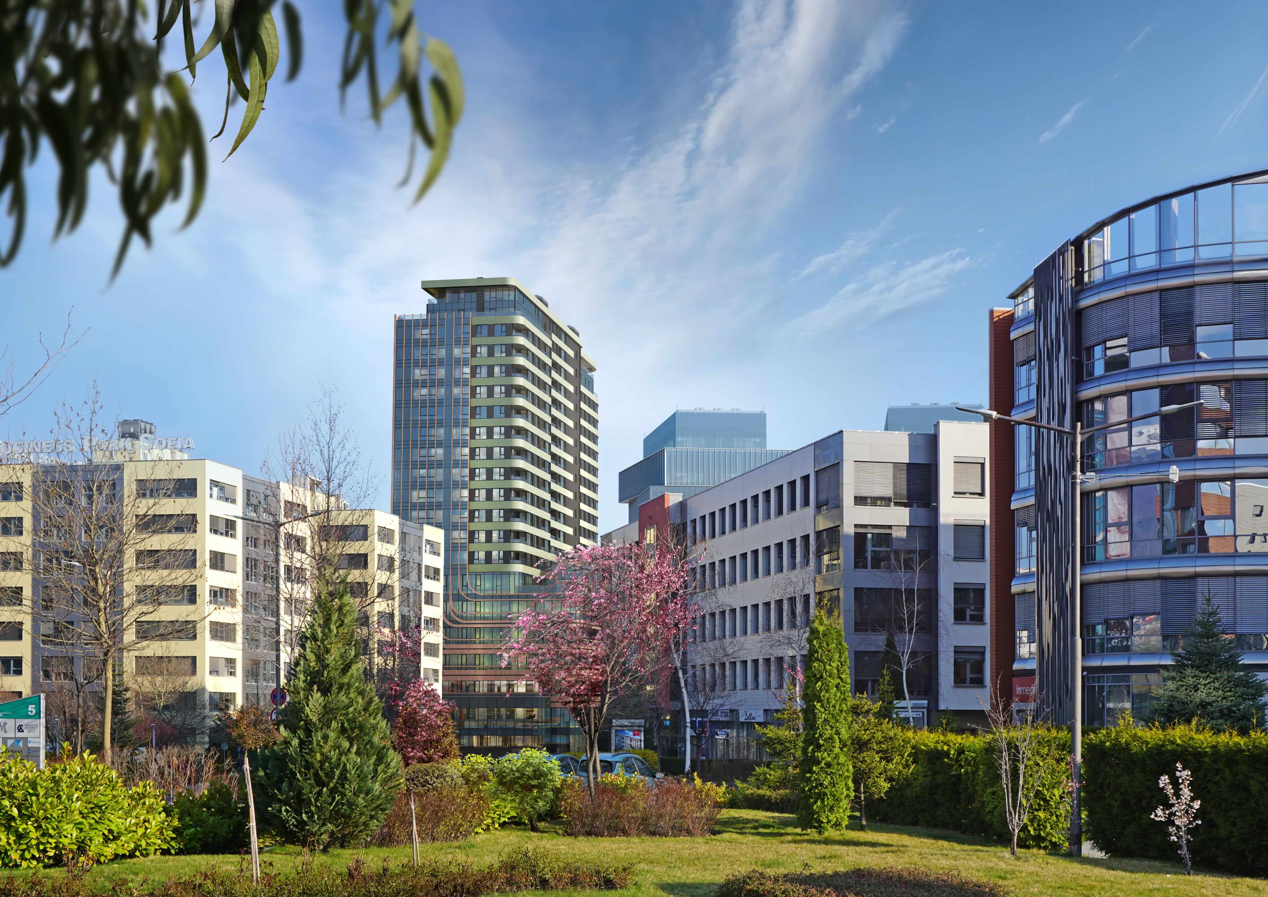 Метростанция Business Park Sofia е на 1 минута пеша, училища и детски градини – на 2. На 5 минути се намират магазини, аптеки, банки и ключови услуги, а с автомобил за 10 минути се стига до IKEA и Ring Mall. Центърът на София е на 15 минути, което прави адреса реално работеща градска точка, а не компромис между удобство и време.